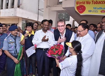 Dr Henk Bekedam felicitated at the World No Tobacco Day Walkathon in New Delhi