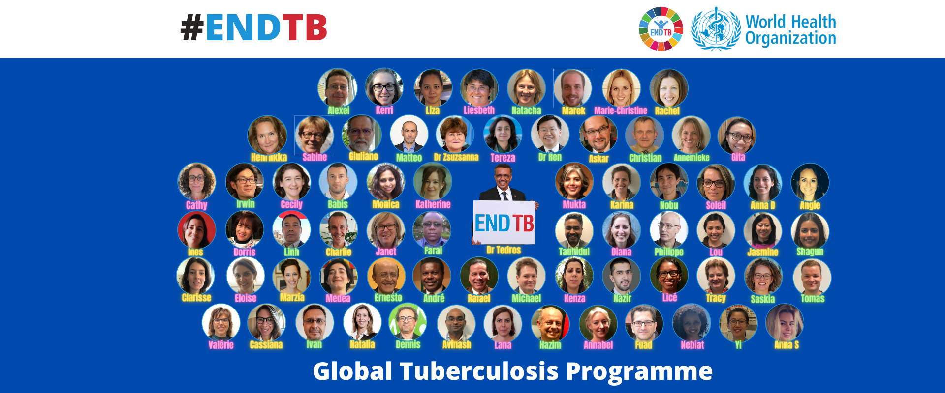 We express our gratitude to our senior leadership including to WHO Director-General Dr Tedros Adhanom Ghebreyesus, WHO Deputy Director-General Dr Zsuzsanna Jakab, WHO Assistant Director-General Dr Ren Minghui, Regional Directors and colleagues in WHO regional and country offices, for prioritizing efforts to end TB as part of efforts towards achieving Universal Health Coverage and ensuring the Right to Health for all, in the spirit of ONE WHO.